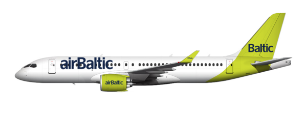 Флоту авио-компаније airBaltic чине најсавременији авиони типа Airbus A220-300, капацитета 148 седишта у једној путничкој класи. Овај модел авиона је познат по високој ефикасности потрошње горива и напредном дизајну, чиме се постижу изванредне оперативне перформансе и врхунска удобност путовања. Распоред путничке кабине је у конфигурацији 2-3 седишта, што значи да се у сваком реду налази укупно пет седишта.